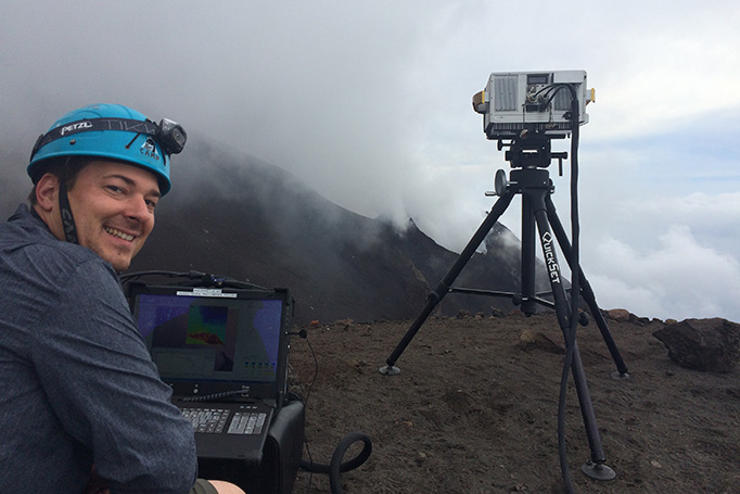 我們的現(xiàn)場(chǎng)應(yīng)用科學(xué)家,Marc-André Gagnon,還有一隊(duì)從布萊斯帕斯卡大學(xué)的法國科學(xué)家,爬上了意大利斯特龍博利火山,用HyperCam去拍攝一個(gè)超級(jí)火山噴發(fā)的高光譜紅外圖片 。